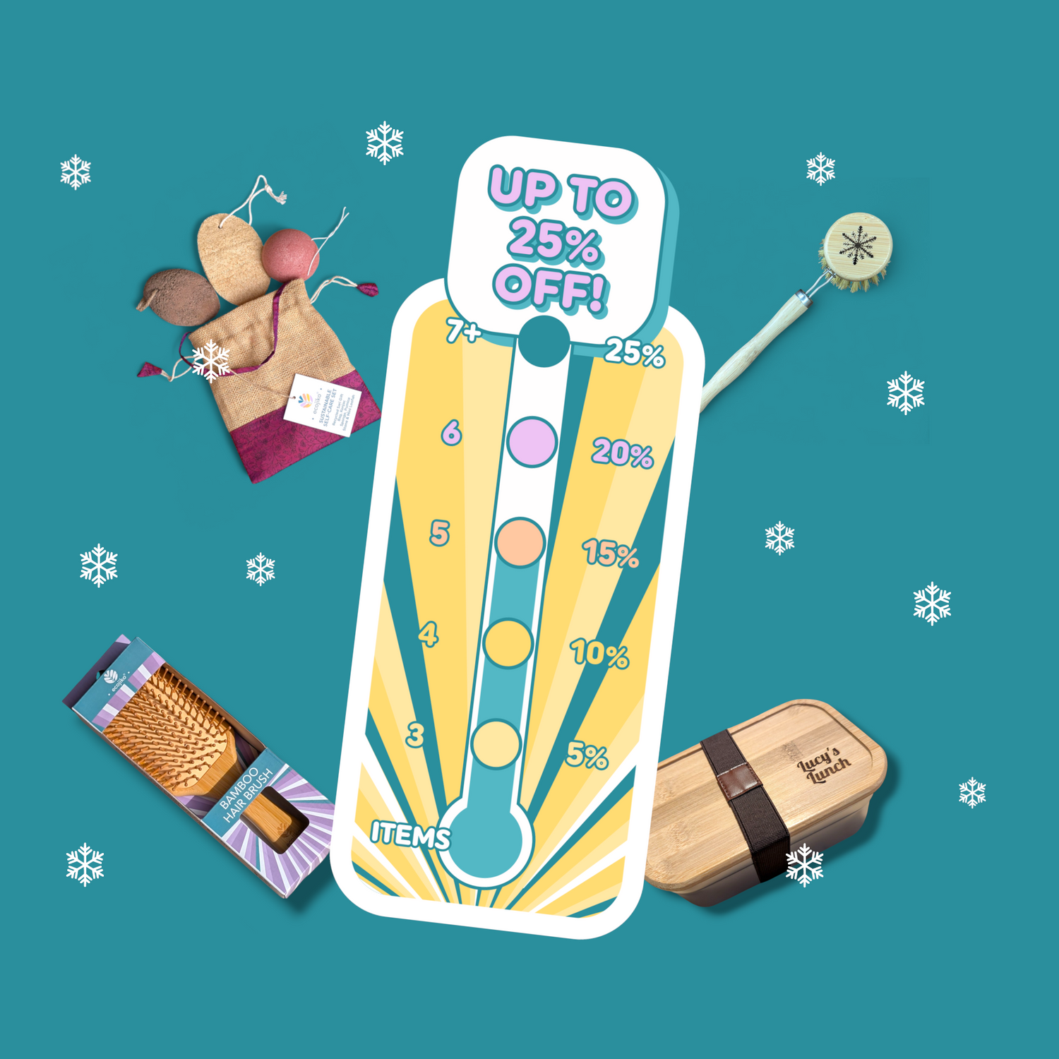 Wrap up a plastic-free Christmas with sustainable gifts for everyone on your list. Save 5% when you buy 3 and watch your discount grow - up to 25% off!